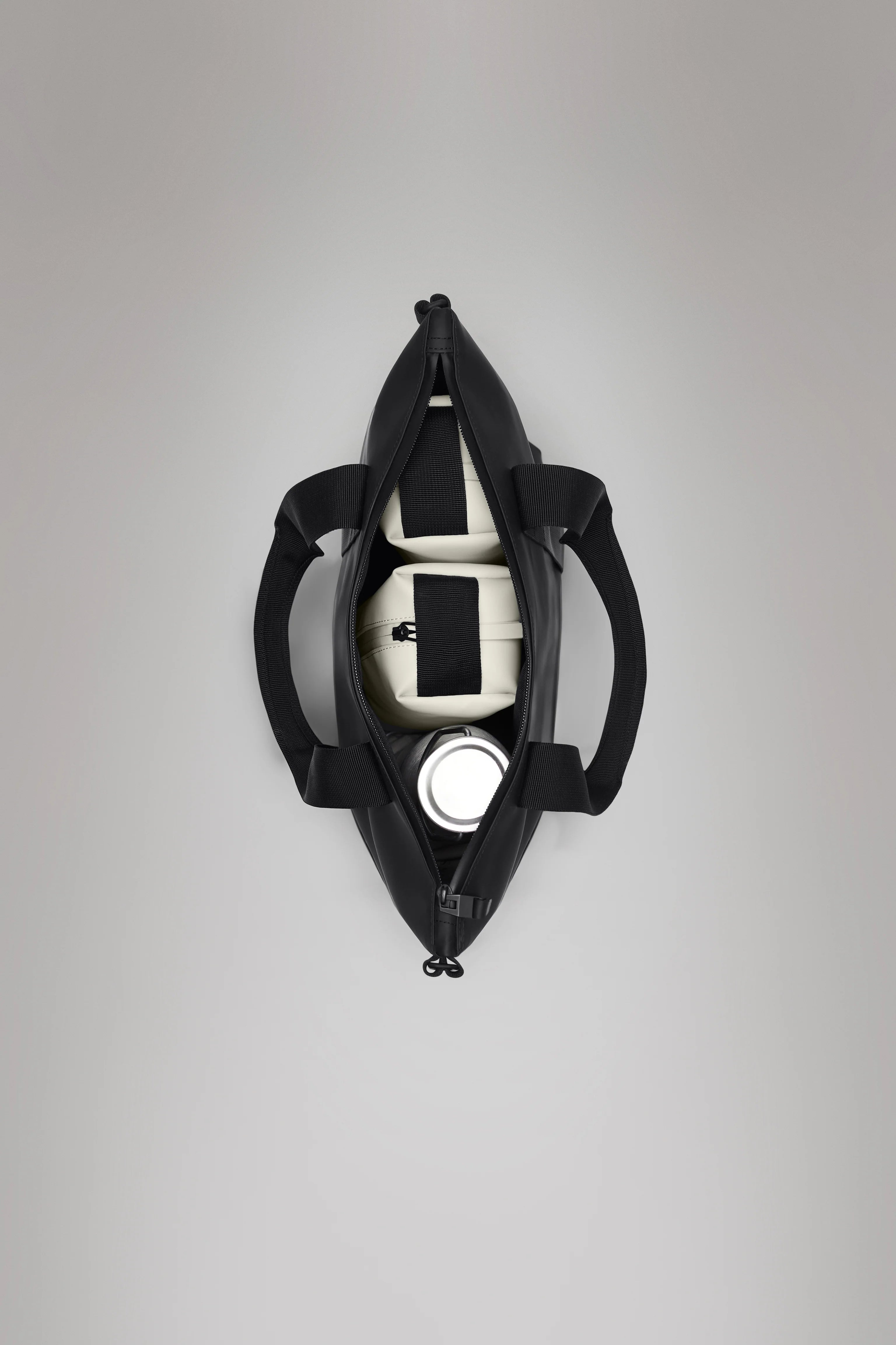 La Tote Bag Micro è realizzata nell'iconico tessuto PU di Rains, progettato per essere robusto, duraturo e piacevole al tatto
