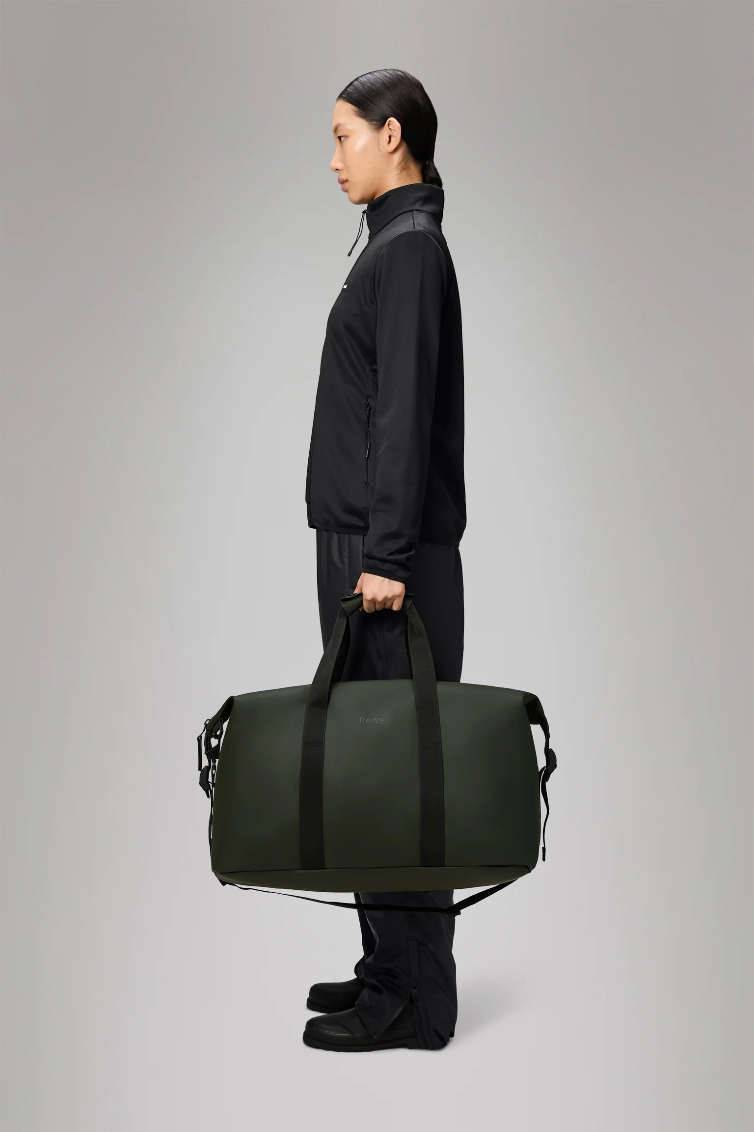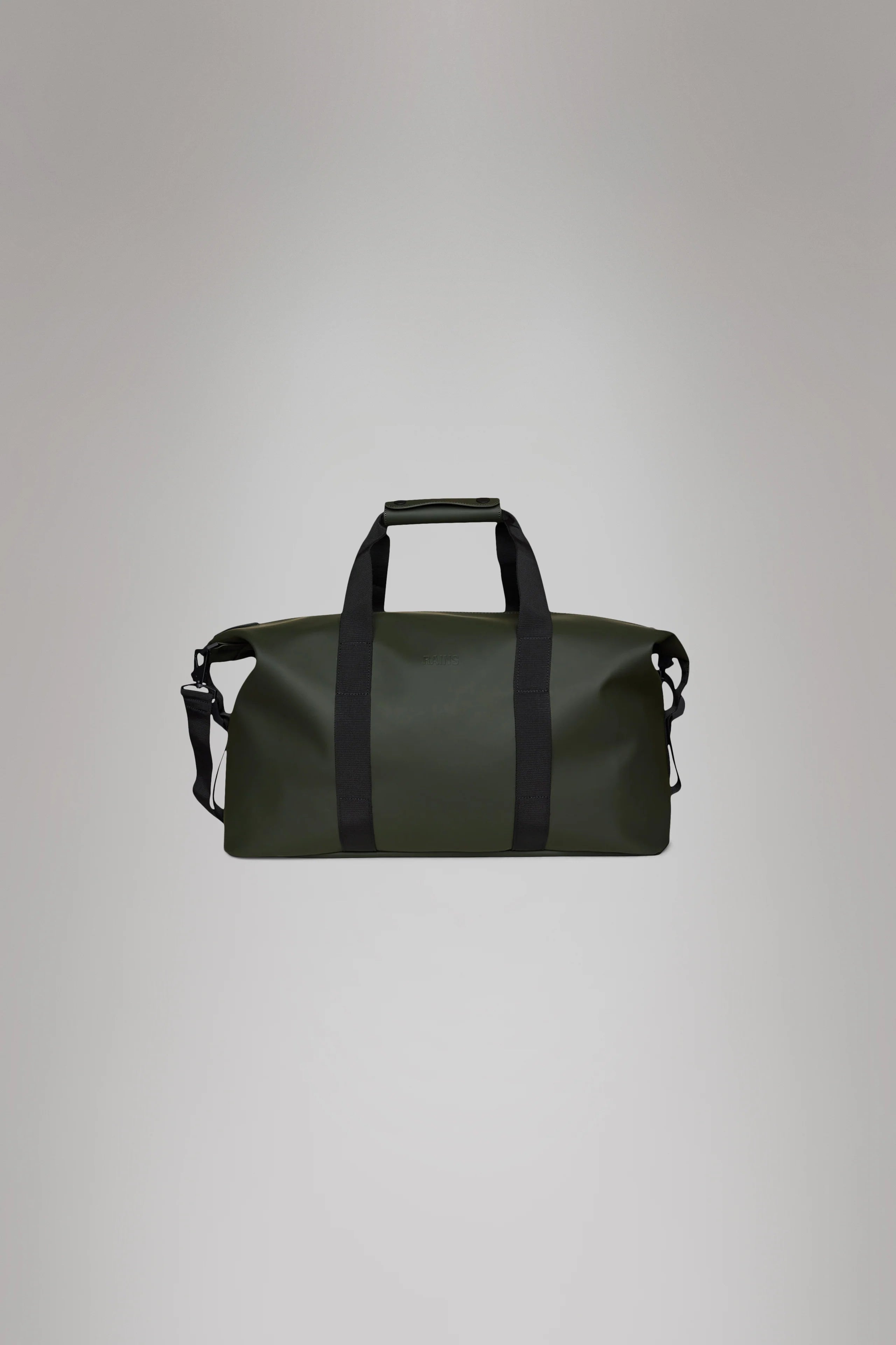 La Hilo Weekend Bag è realizzata nell'iconico tessuto PU impermeabile di Rains, progettato per essere robusto, duraturo e piacevole al tatto.