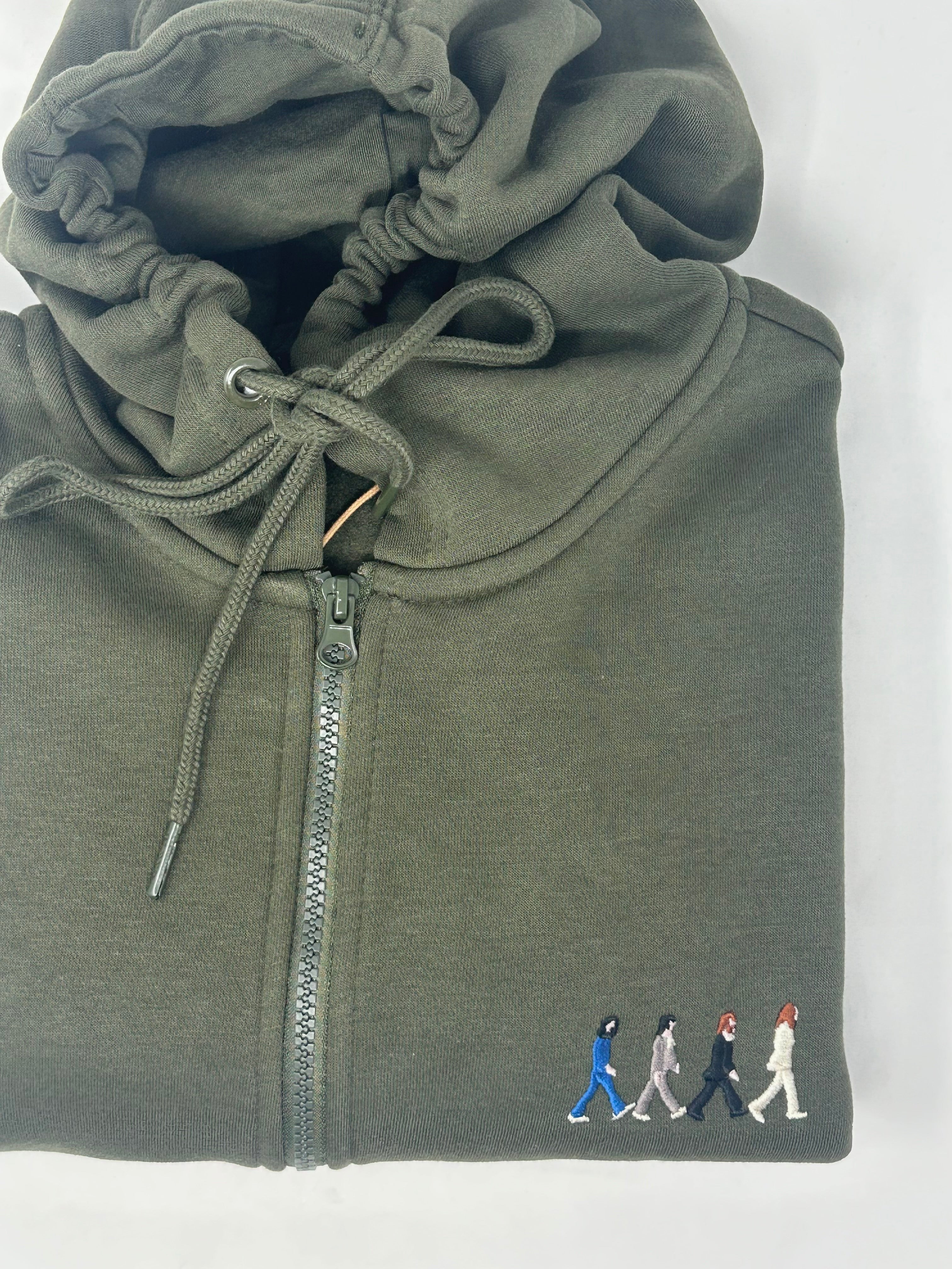 Felpa con cappuccio zip intera con BEATLES ricamati a mano