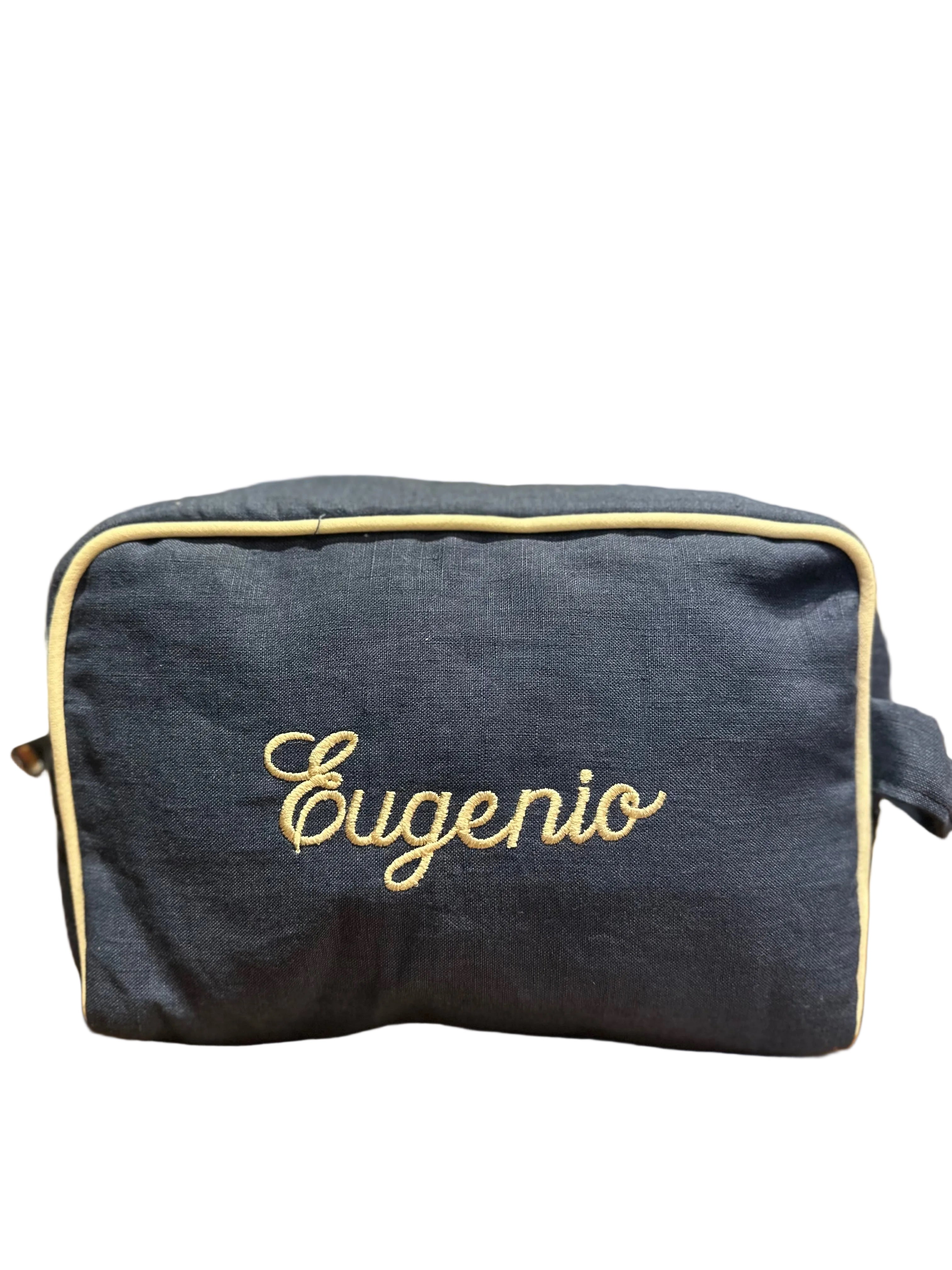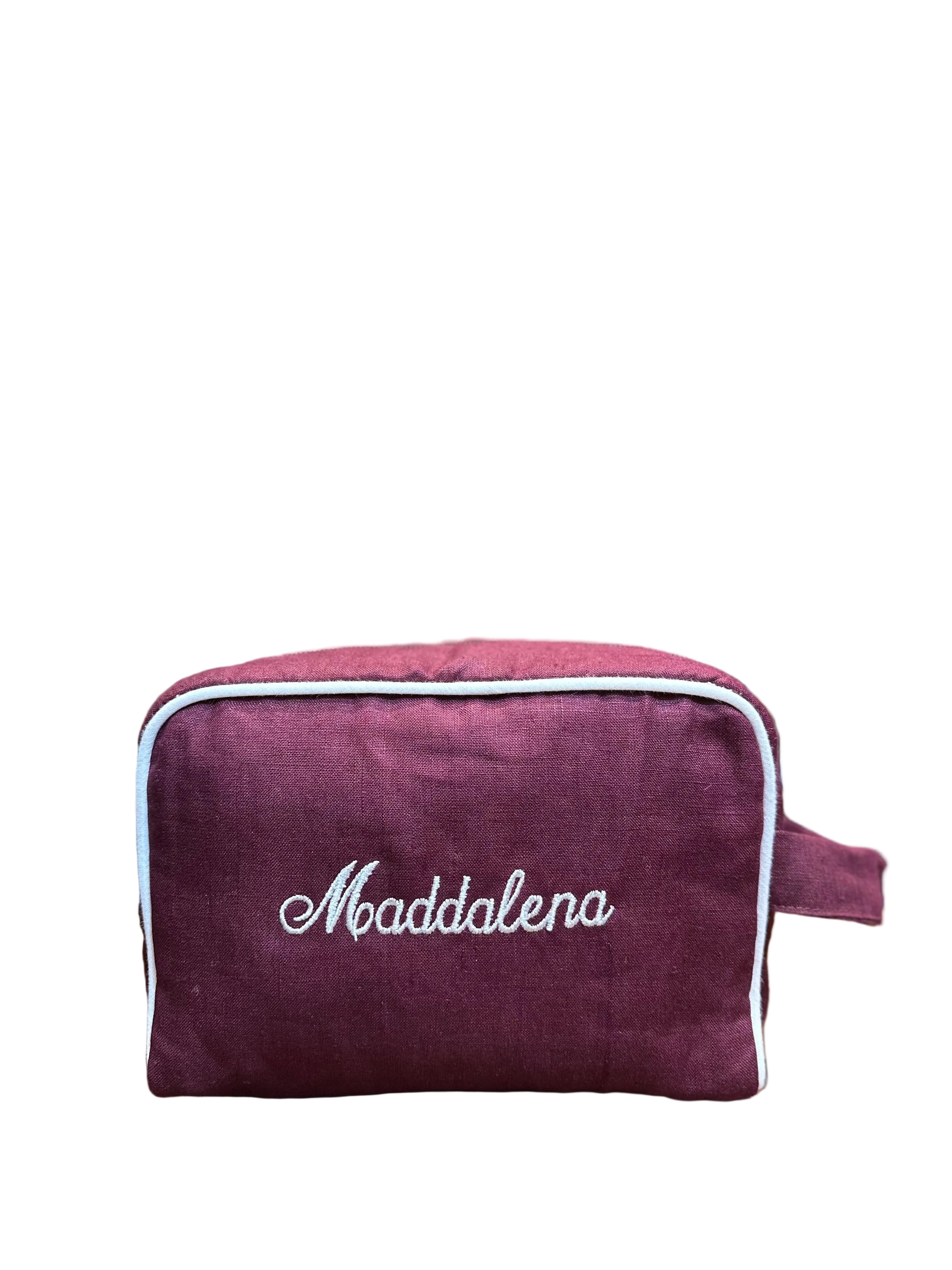 BEAUTY CASE IN LINO CON RICAMO NOME
