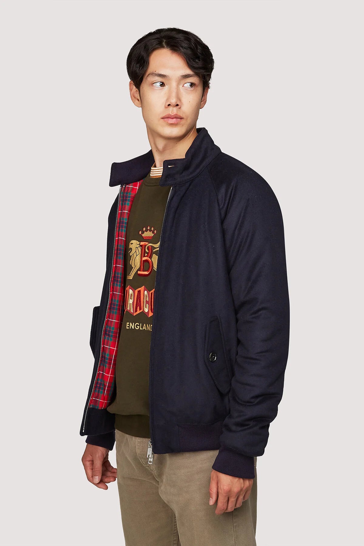 Siate pronti ad innamorarvi del G9 Melton, una versione invernale del classico G9 Harrington realizzata con il miglior mix di lana e cashmere italiano, che la rende una delle giacche più morbide e comode che si possano immaginare. La fodera è leggermente imbottita per garantire un maggior isolamento termico e presenta l'iconico Fraser Tartan. Perfetto per un look casual, ma ideale anche per un look più formale, per esempio abbinato ai nostri pantaloni a coste.