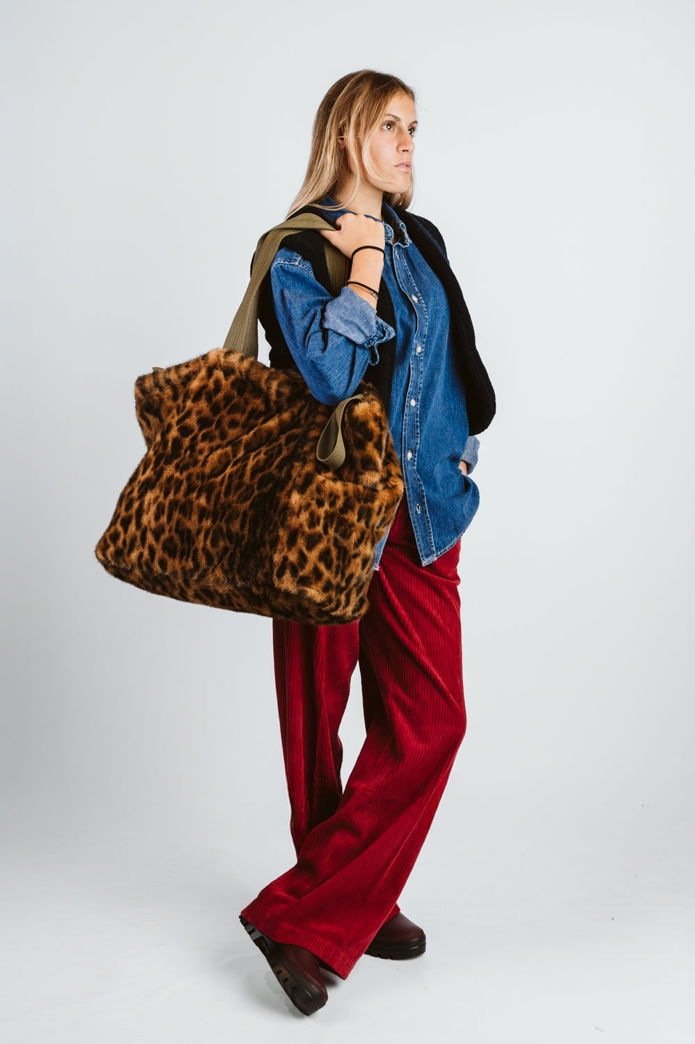 SHOPPER ECO FUR LEOPARD PRINT - REVERSIBILE MILITARE