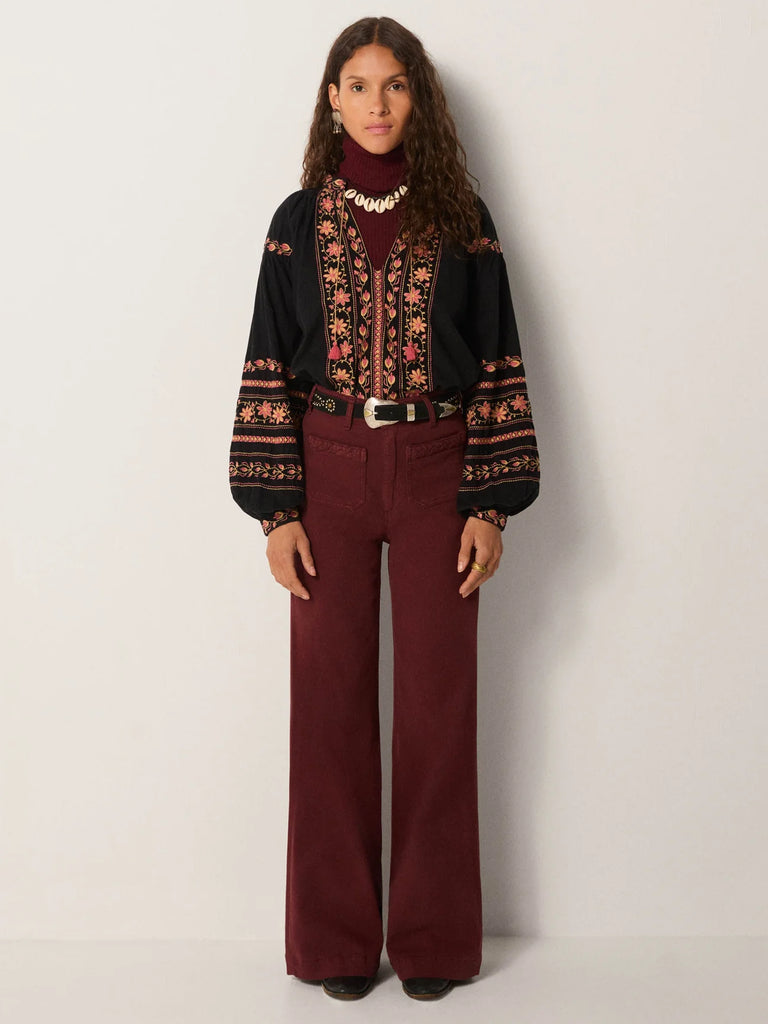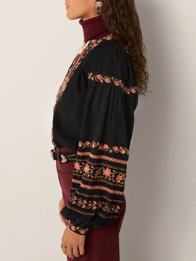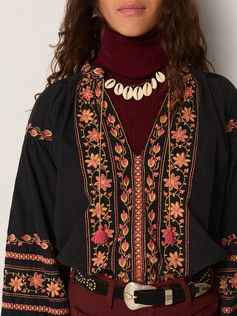 CAMICIA VIRGINIA VELLUTO A COSTE RICAMO - NERO