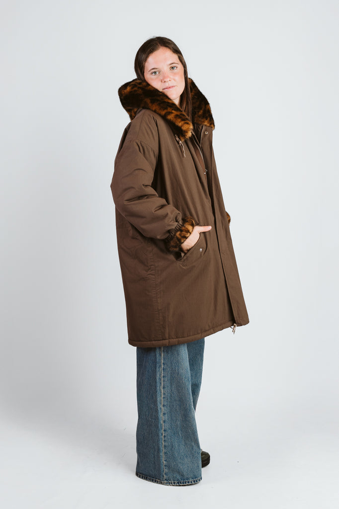 PARKA LAOS OVERSIZE - SALVIA FODERA ECO PELLICCIA ANIMALIER