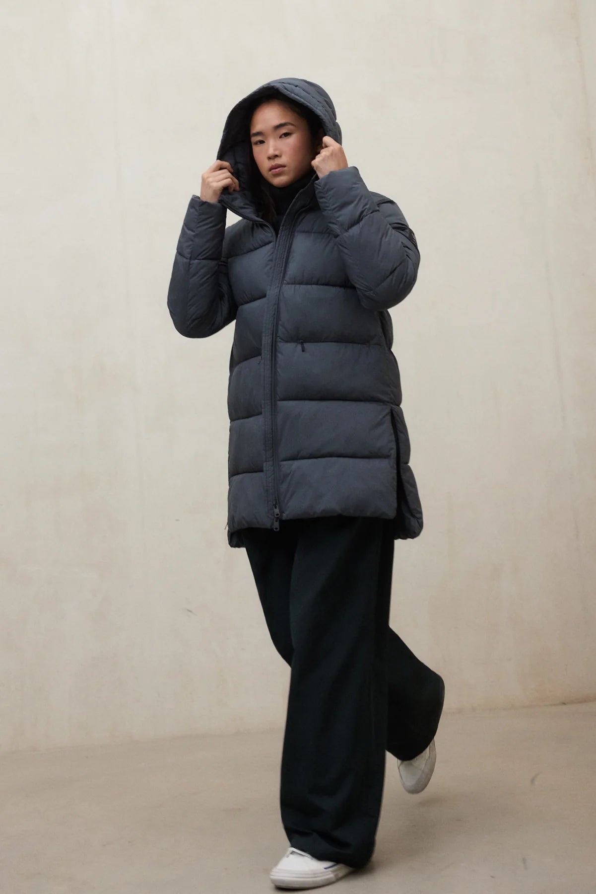 Progettato per il freddo e la pioggia, questo cappotto con cappuccio idrorepellente ti mantiene asciutto/a e al caldo per tutto il giorno.