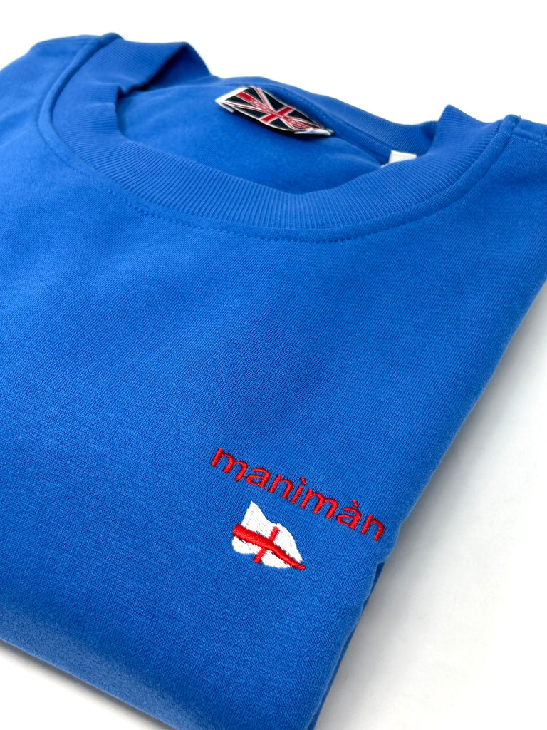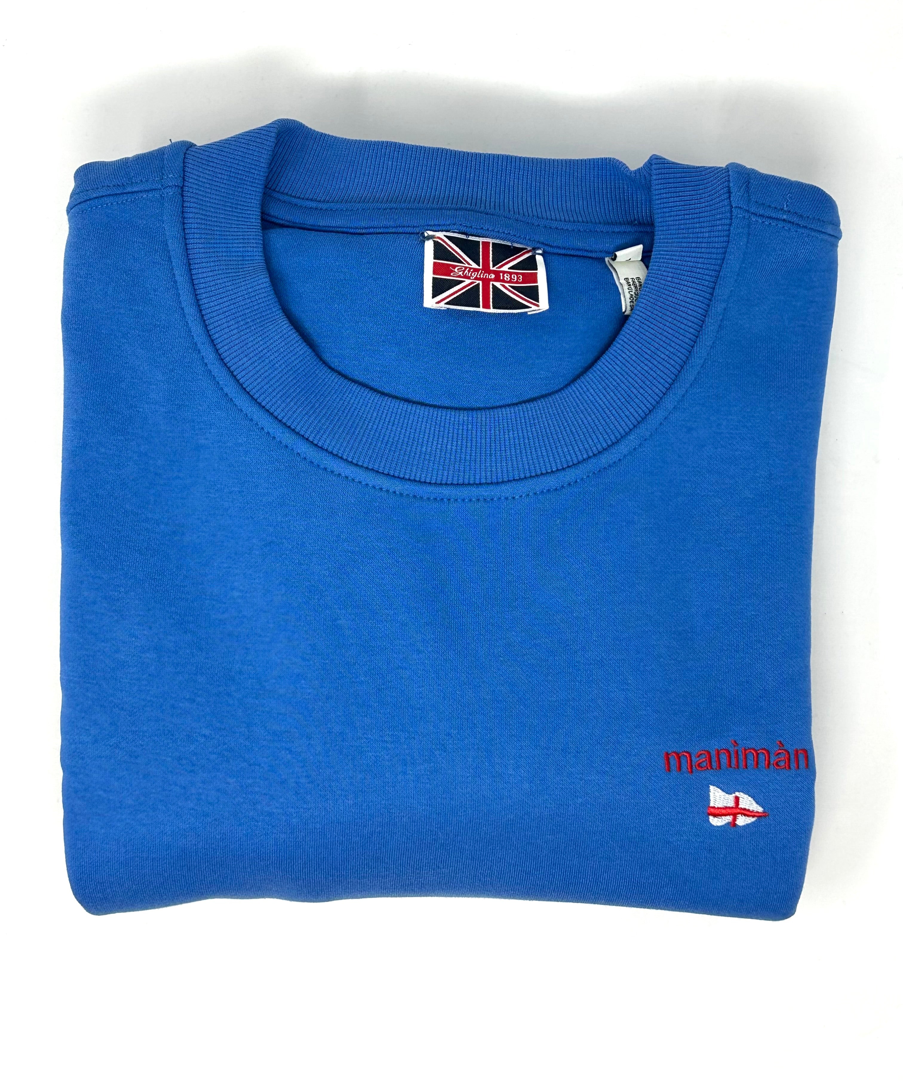 Felpa girocollo royal ricamata a mano con scritta MANIMAN e bandierina di Genova