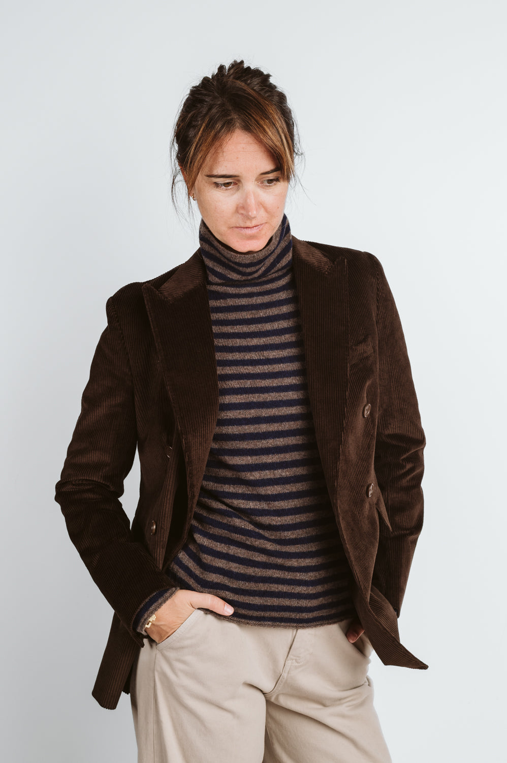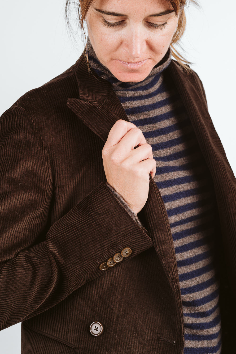 Capo immancabile della collezione Ghiglino1893, la giacca doppiopetto con ampi revers a lancia è realizzata in cotone di velluto a coste, dal gusto casual e ricercato. Caratterizzata da due tasche a filo con patta, doppio spacchetto laterale e vari taschini interni. Tutto seguendo una lavorazione sartoriale napoletana.