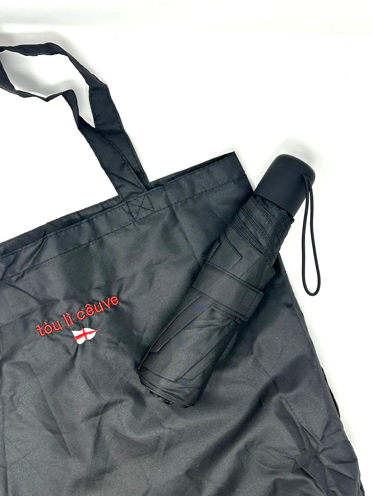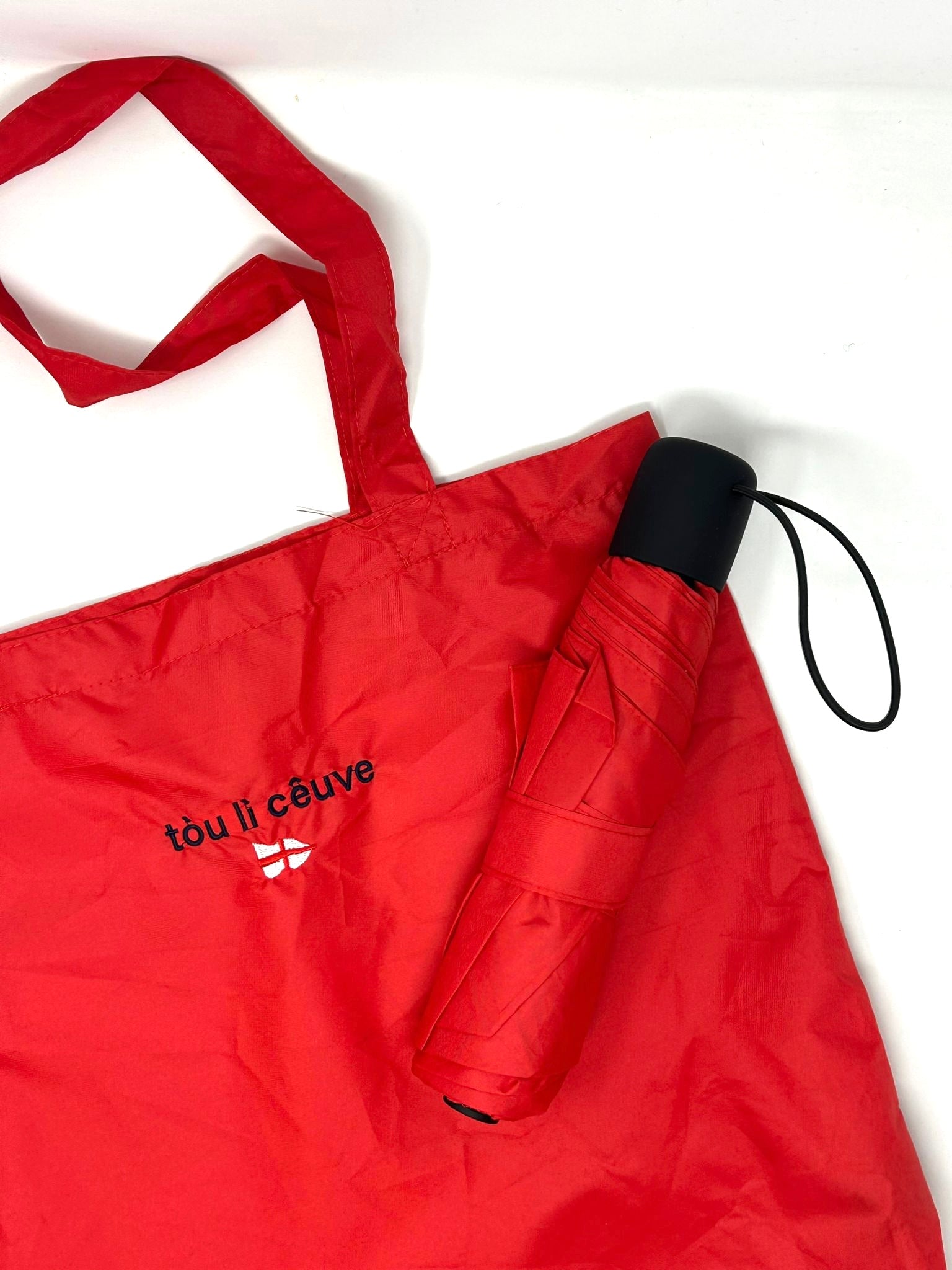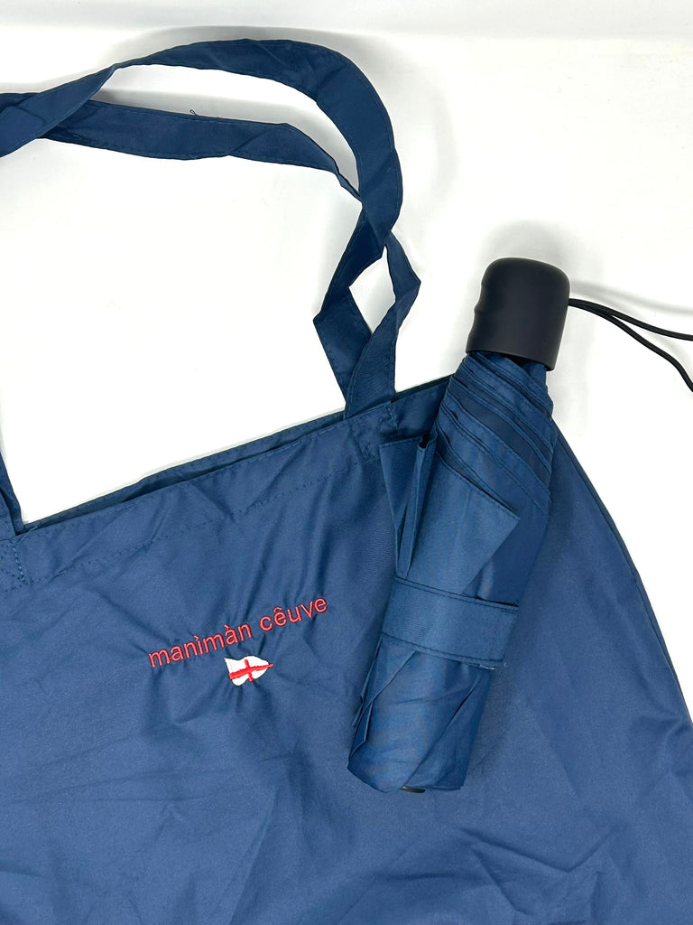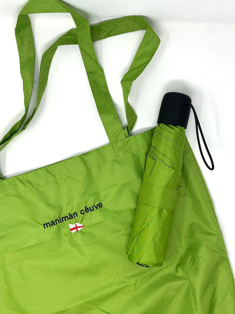 si presentano come eleganti shopper, con una tasca nascosta sul fondo che custodisce un pratico ombrello da estrarre in caso di pioggia.