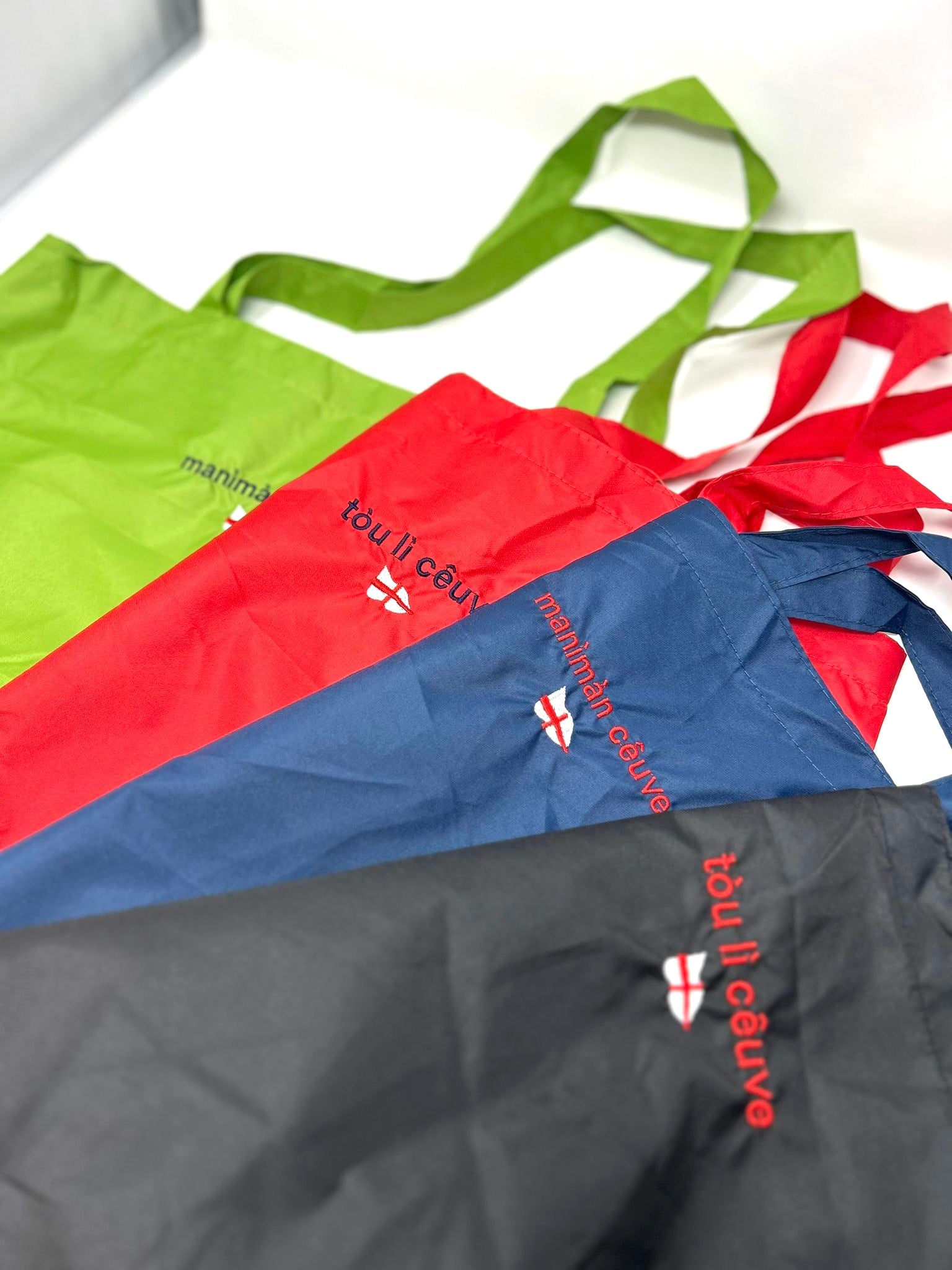 Ogni modello è personalizzato con frasi a tema pioggia ricamate in genovese e decorato con la bandierina.