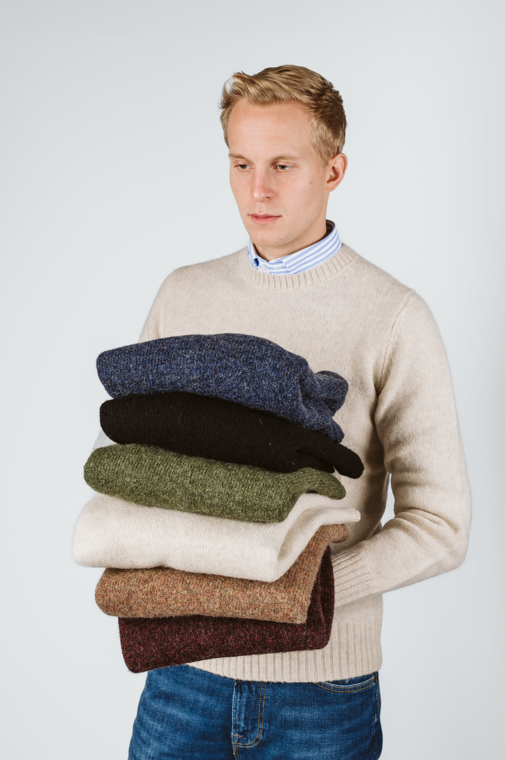 Maglione realizzato interamente in pura lana vergine Shetland. Parte della Collezione GHIGLINO 1893, è progettato e confezionato con cura in Italia da GHIGLINO 1893.