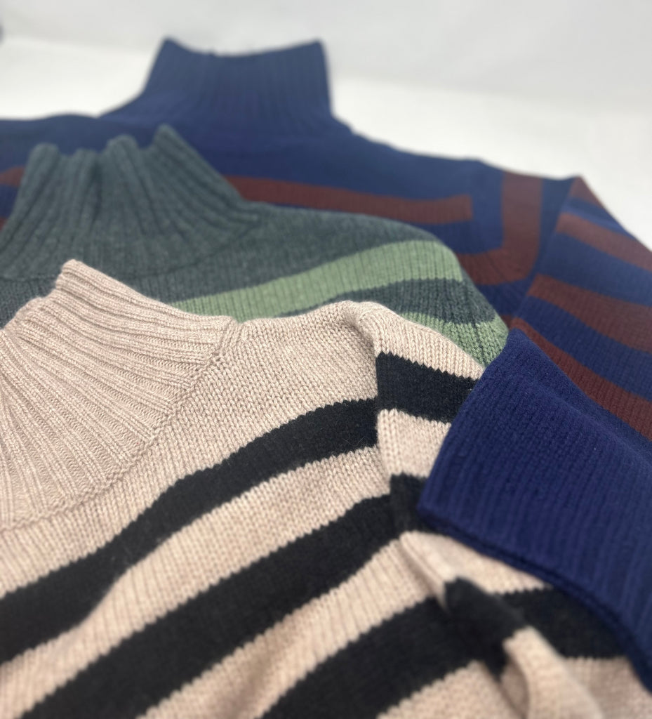 Maglione collo alto vestibilità  a trapezio con riga piazzata