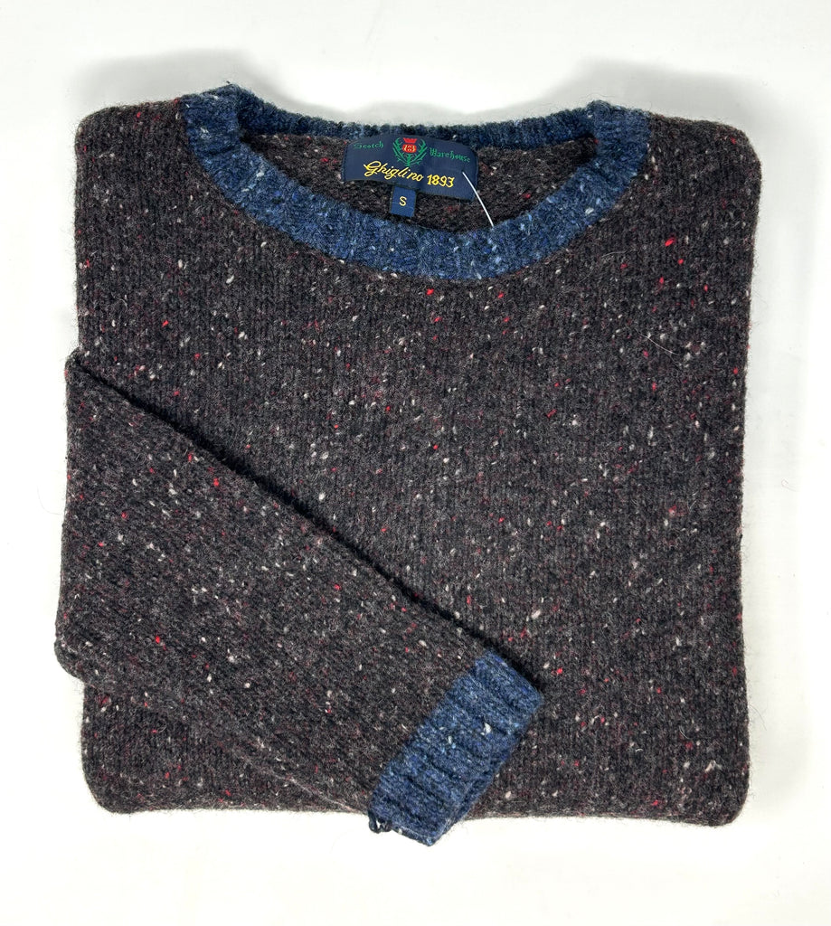 maglione tweed con bordi collo, polsini e fondo in contrasto