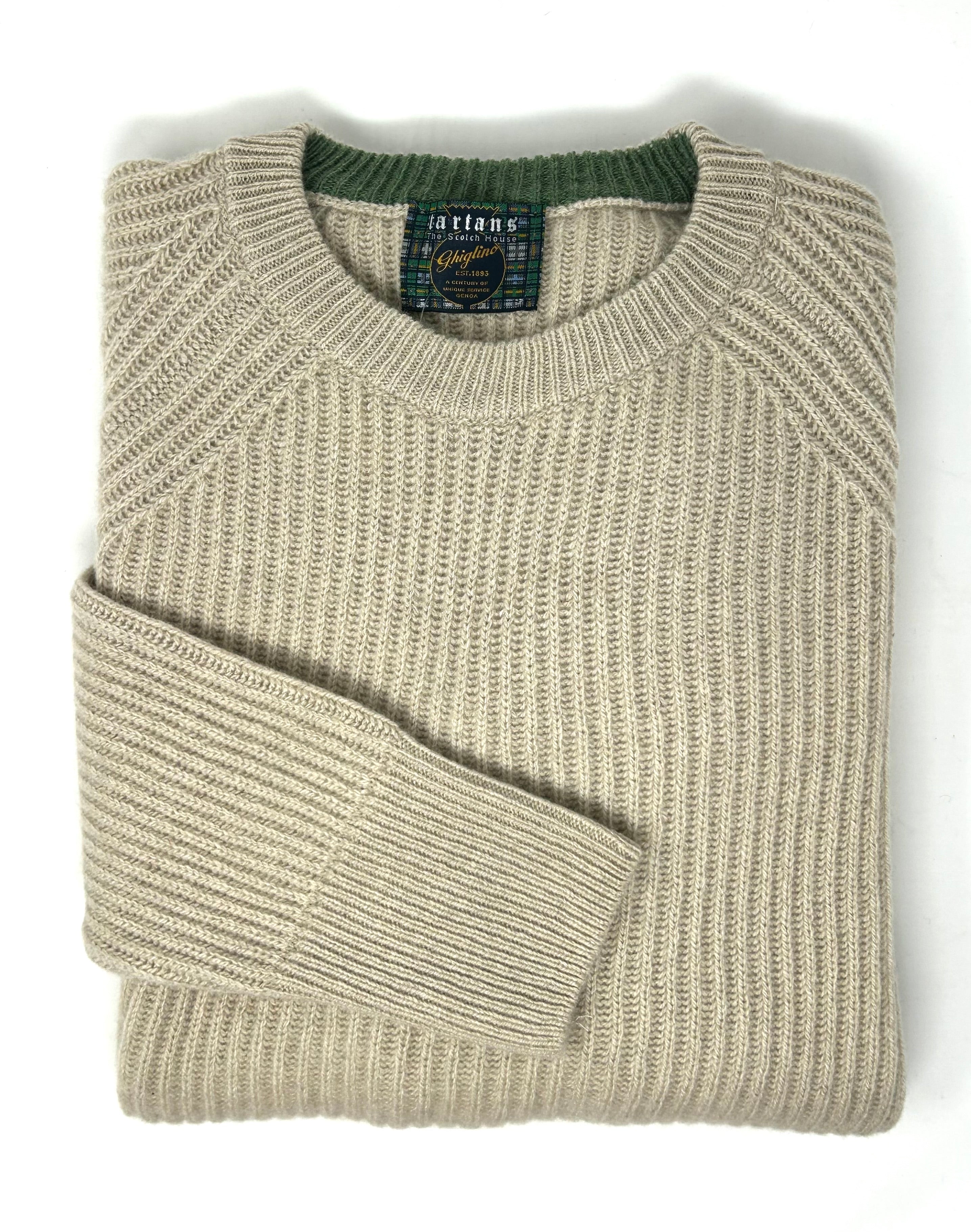 Maglione “Jackie” costa inglese 100% puro cashmere rigenerato, o riciclato che si ottiene rigenerando la fibra.