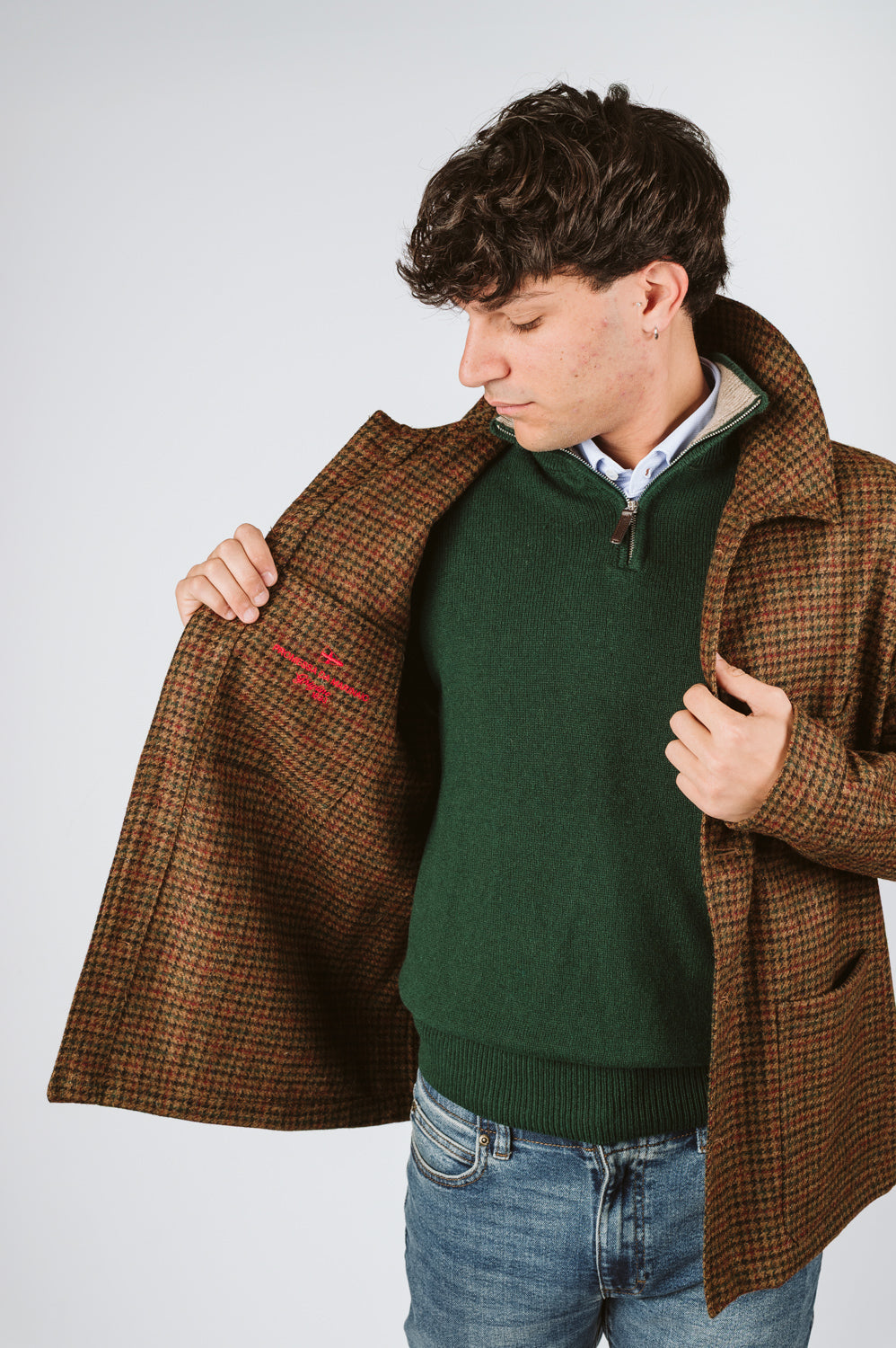 Maglione con mezza zip e interno collo a contrasto, arricchito da un tira-zip in pelle, dall’iconica vestibilità regular. Realizzato in un raffinato blend di 90% lana e 10% cachemire. Progettato e confezionato da Ghiglino1893, Made in Italy.