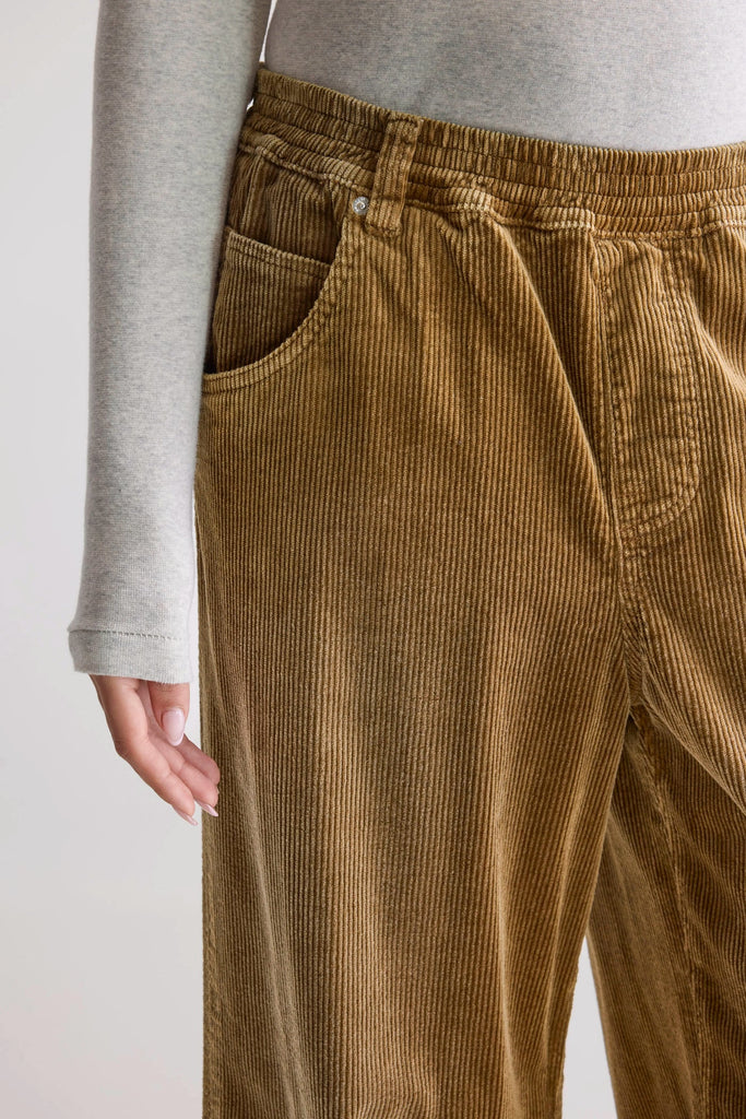 Pantaloni a vita alta a gamba larga in velluto a coste cammello con vestibilità ampia e elastico in vita.