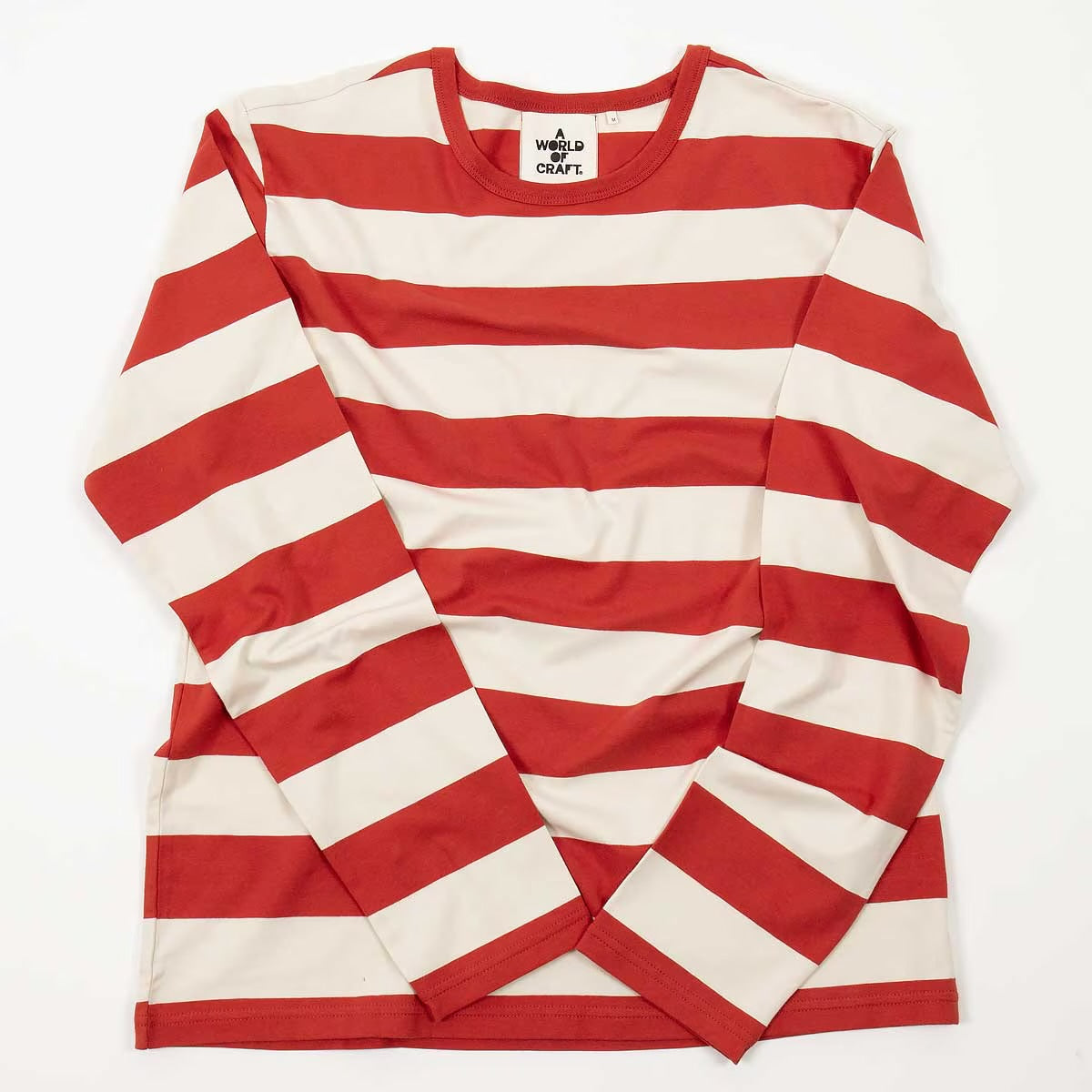 A WORLD OF CRAFT T-SHIRT MANICA LUNGA RIGA ROSSO/BEIGE