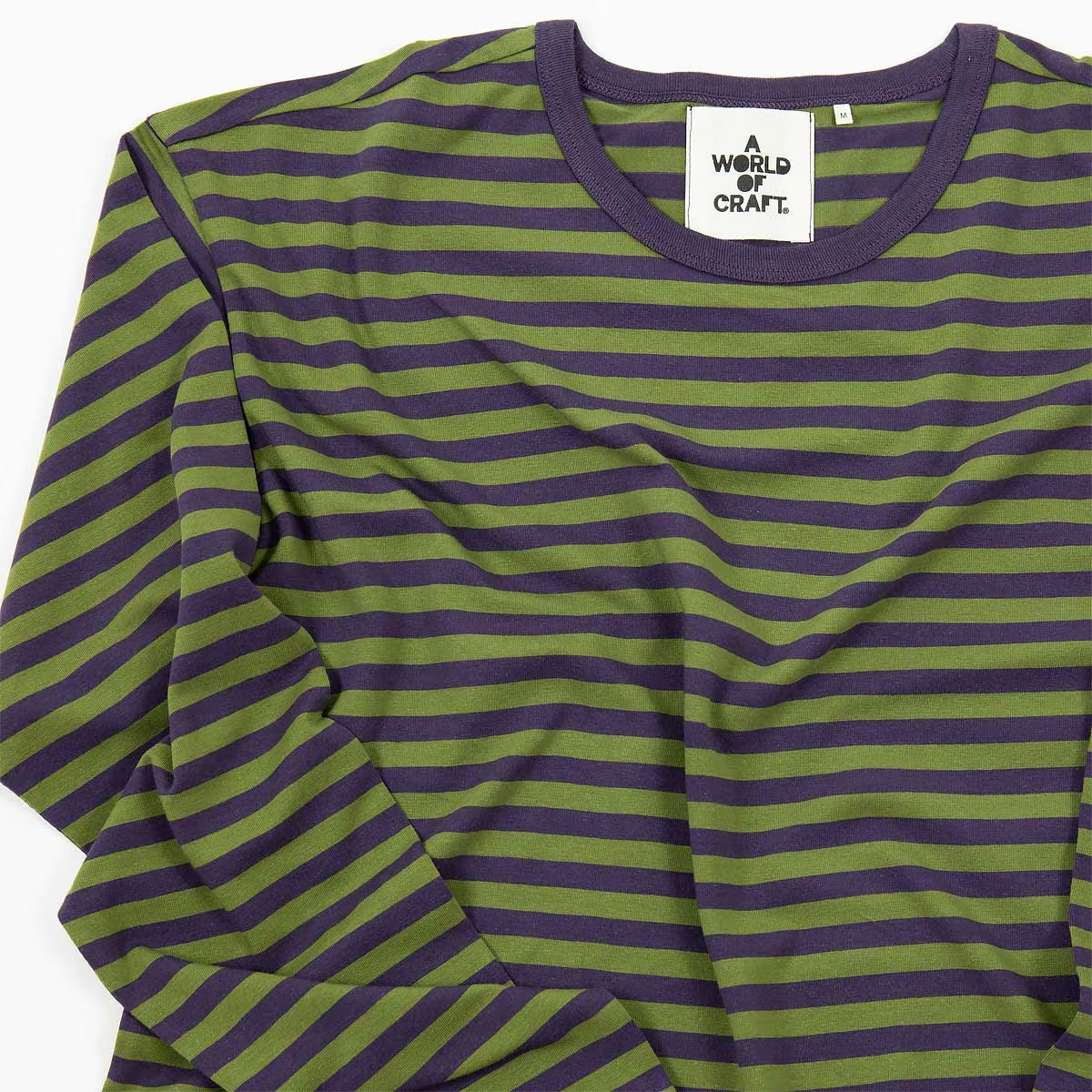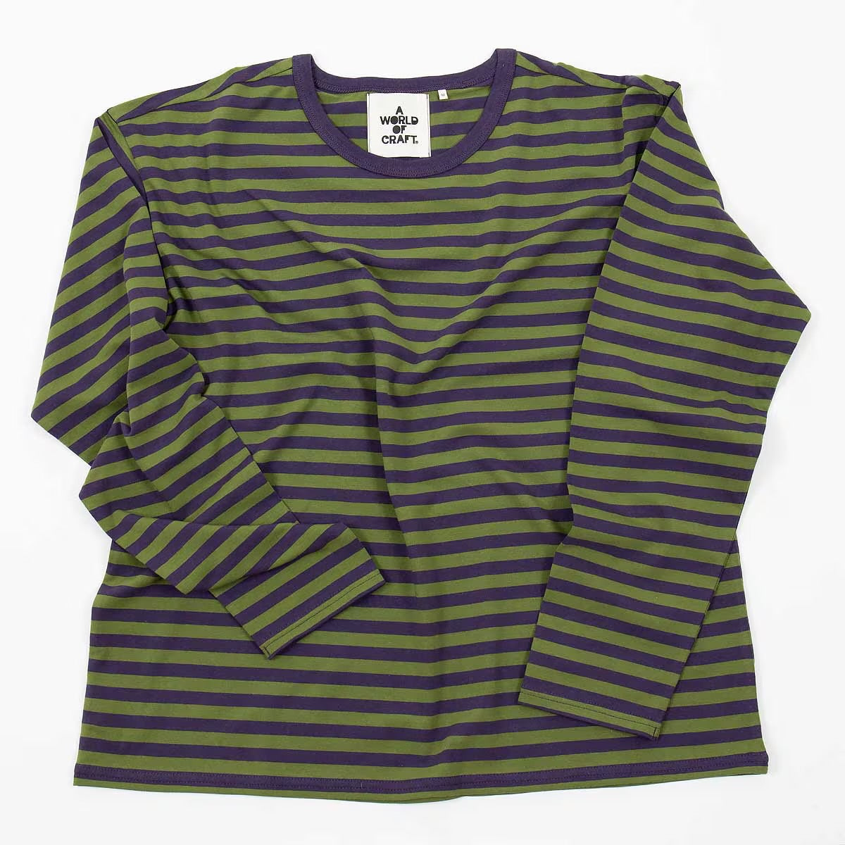 A WORLD OF CRAFT T-SHIRT MANICA LUNGA RIGA VERDE OLIVA/MELANZANA