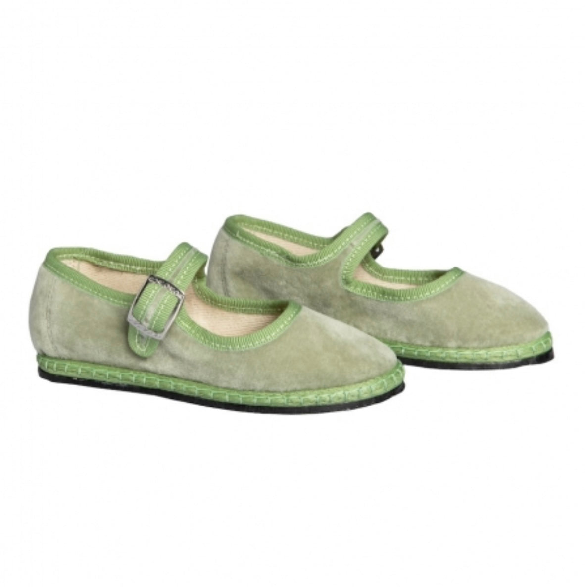 Furlane mary jane da bambina lavorate a mano, in velluto con suola in gomma e laccetto