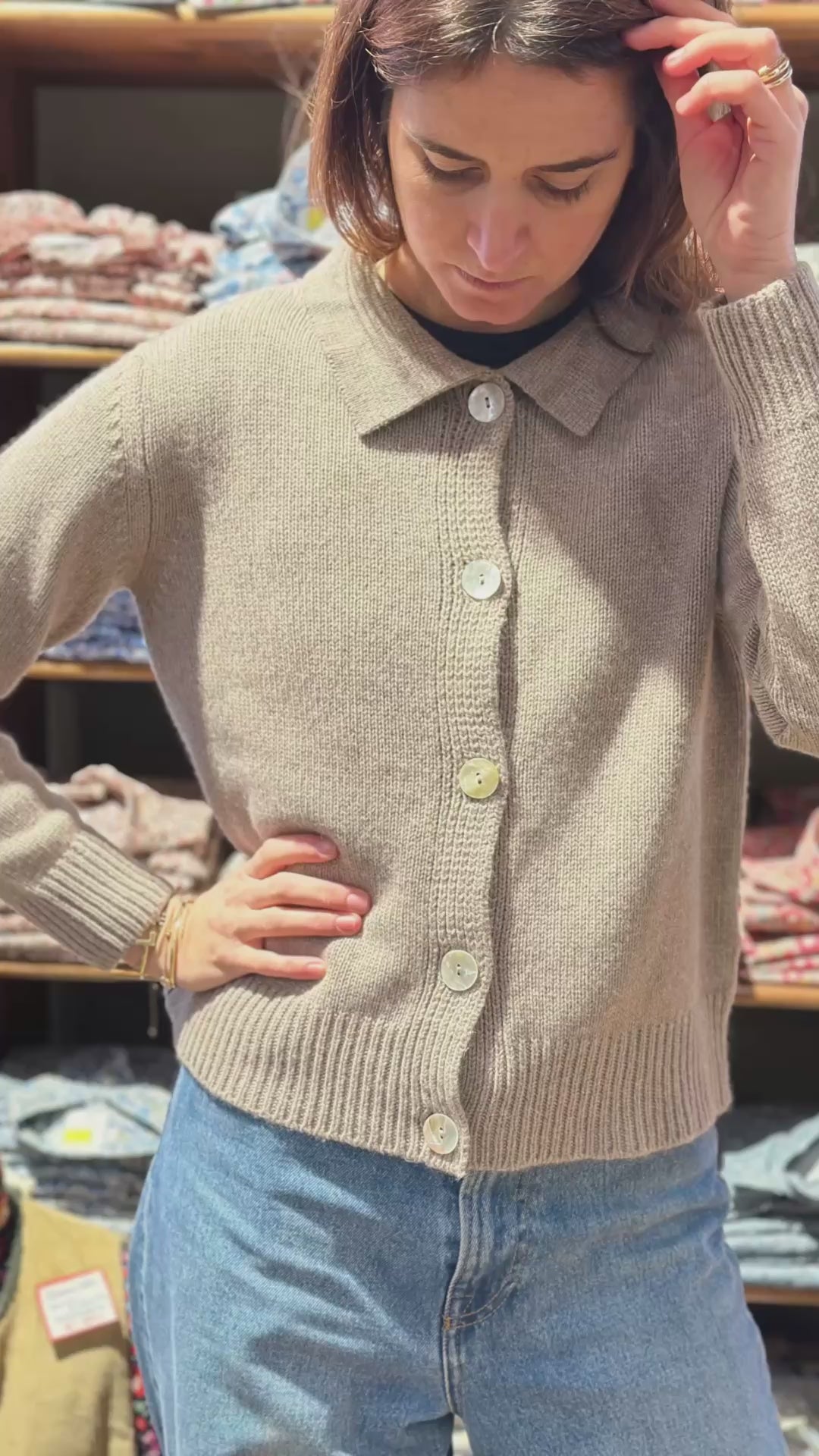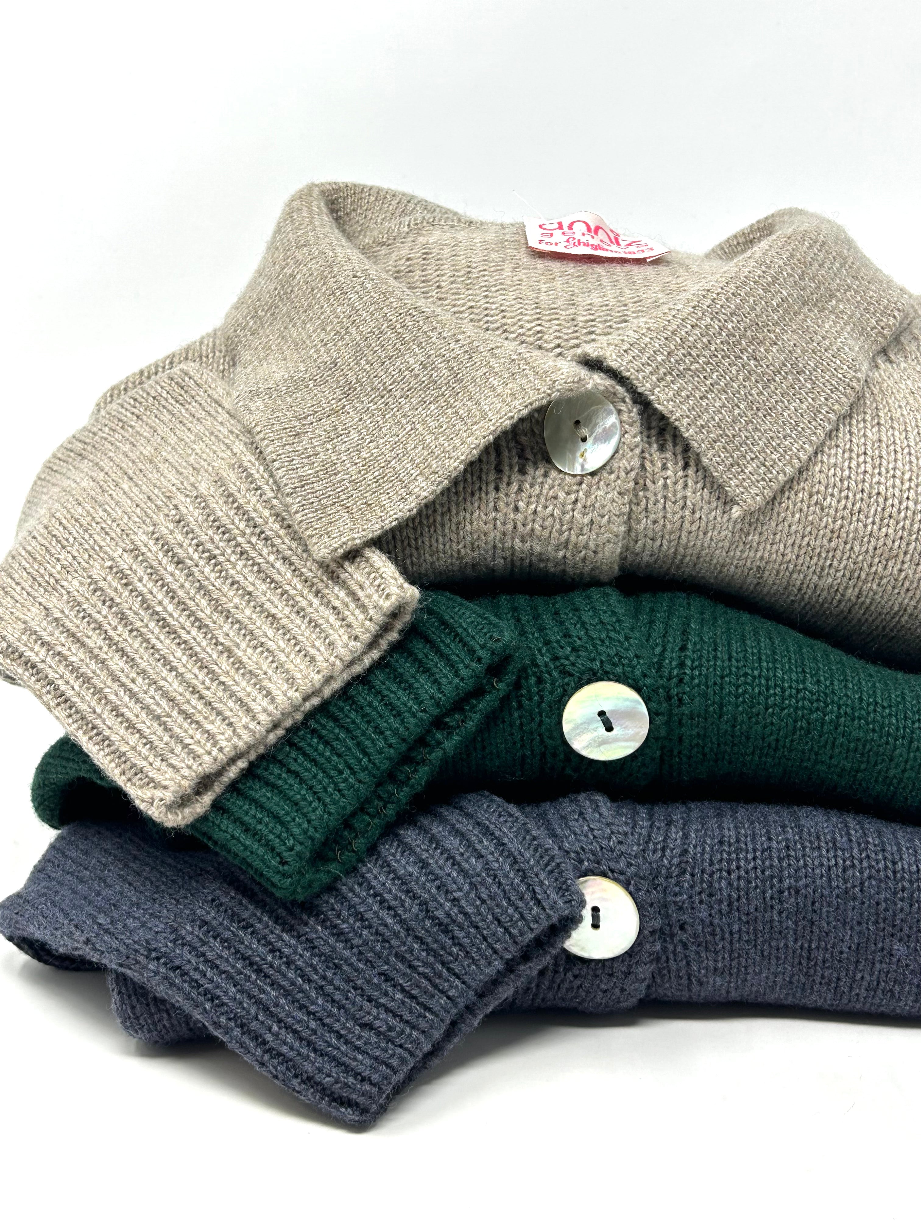 Cardigan con colletto a polo, vestibilità a scatoletta, manica giro.