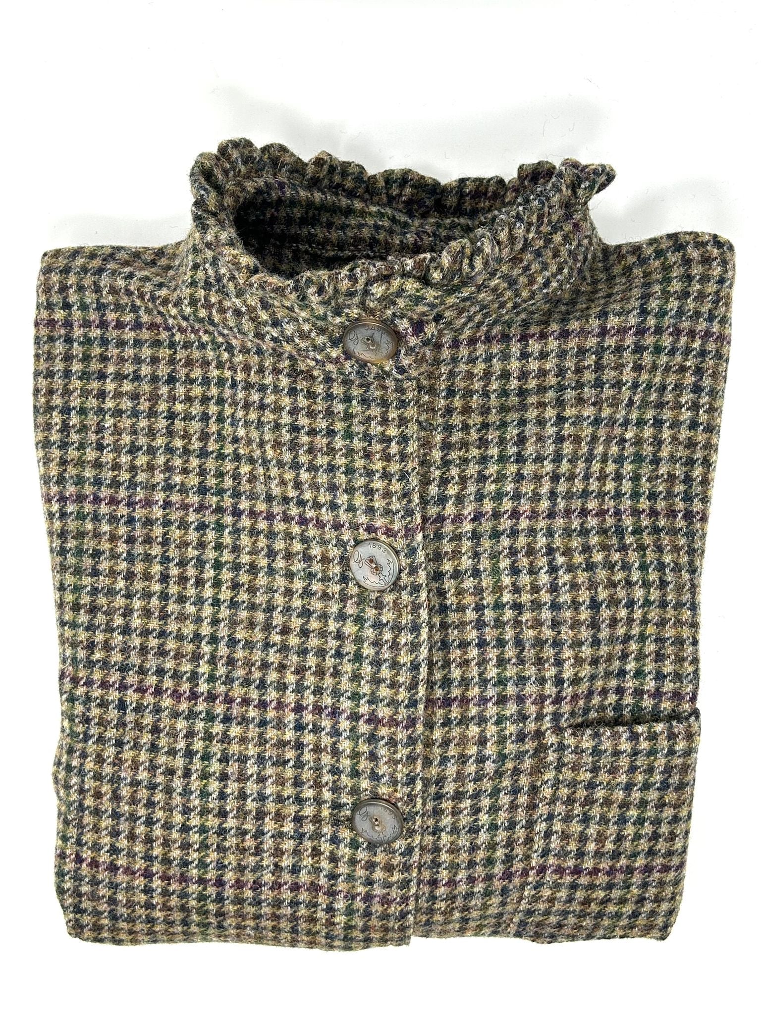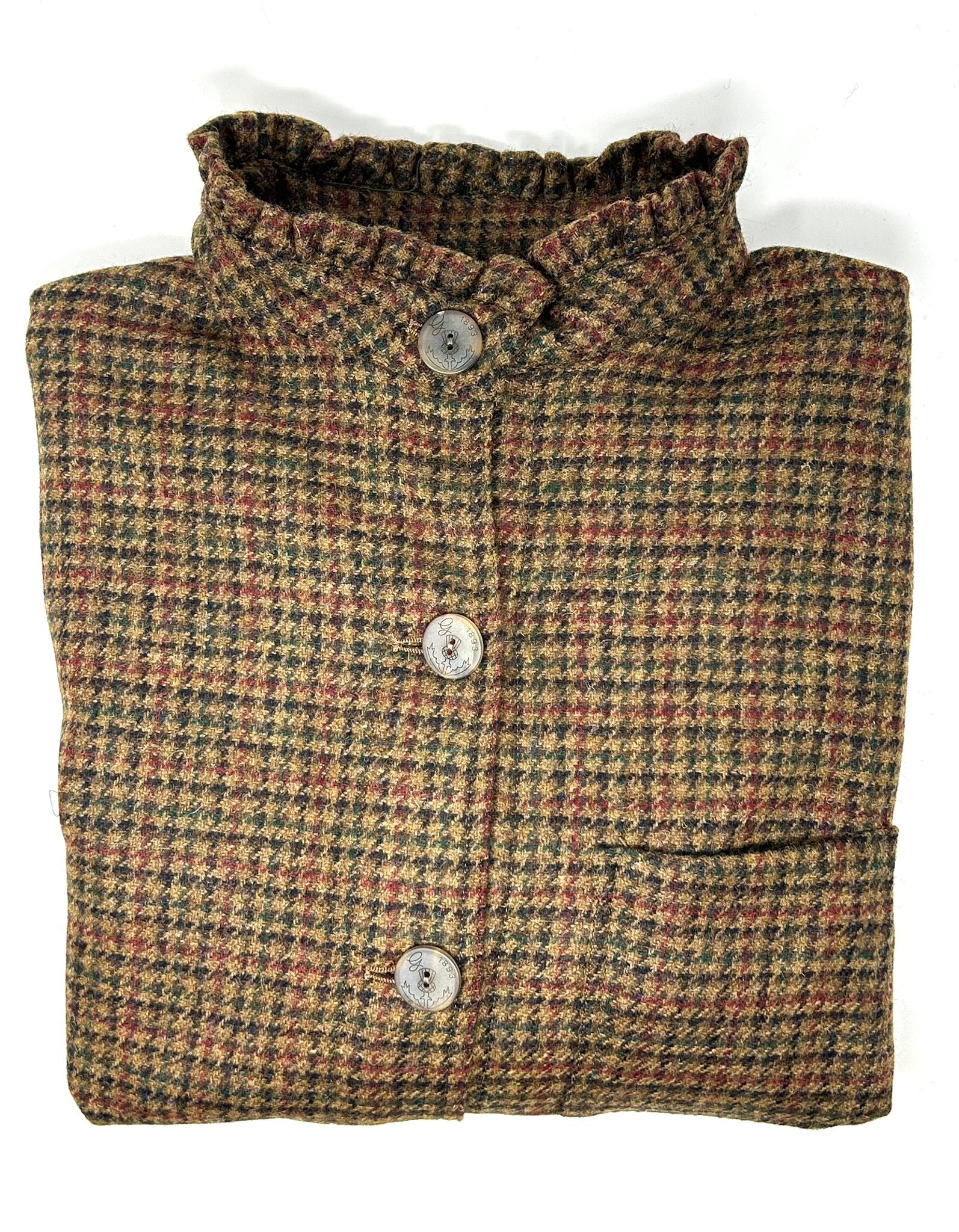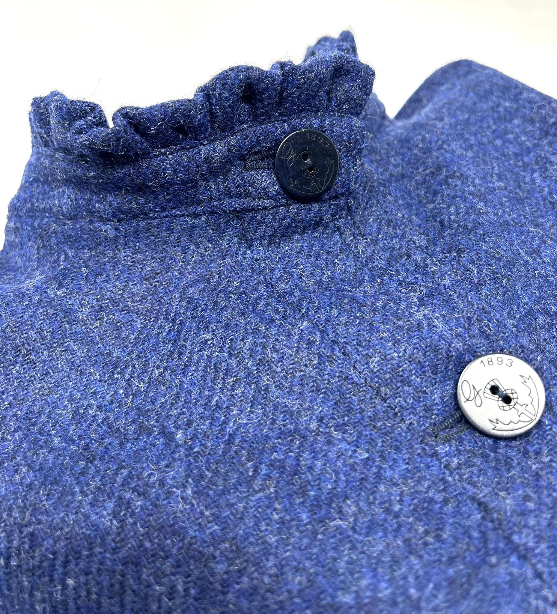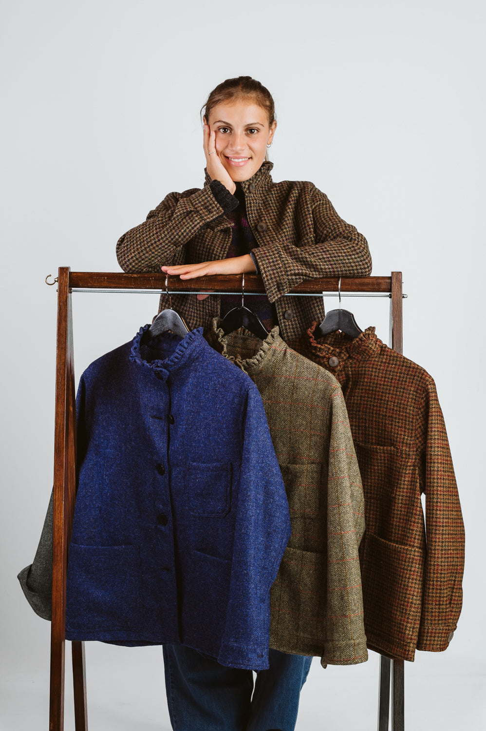 La nostra iconica "GIACCA DEL CAMALLO" con micro rouches su colletto coreana, realizzata in tessuto HARRIS TWEED ORIGINALE made in England.